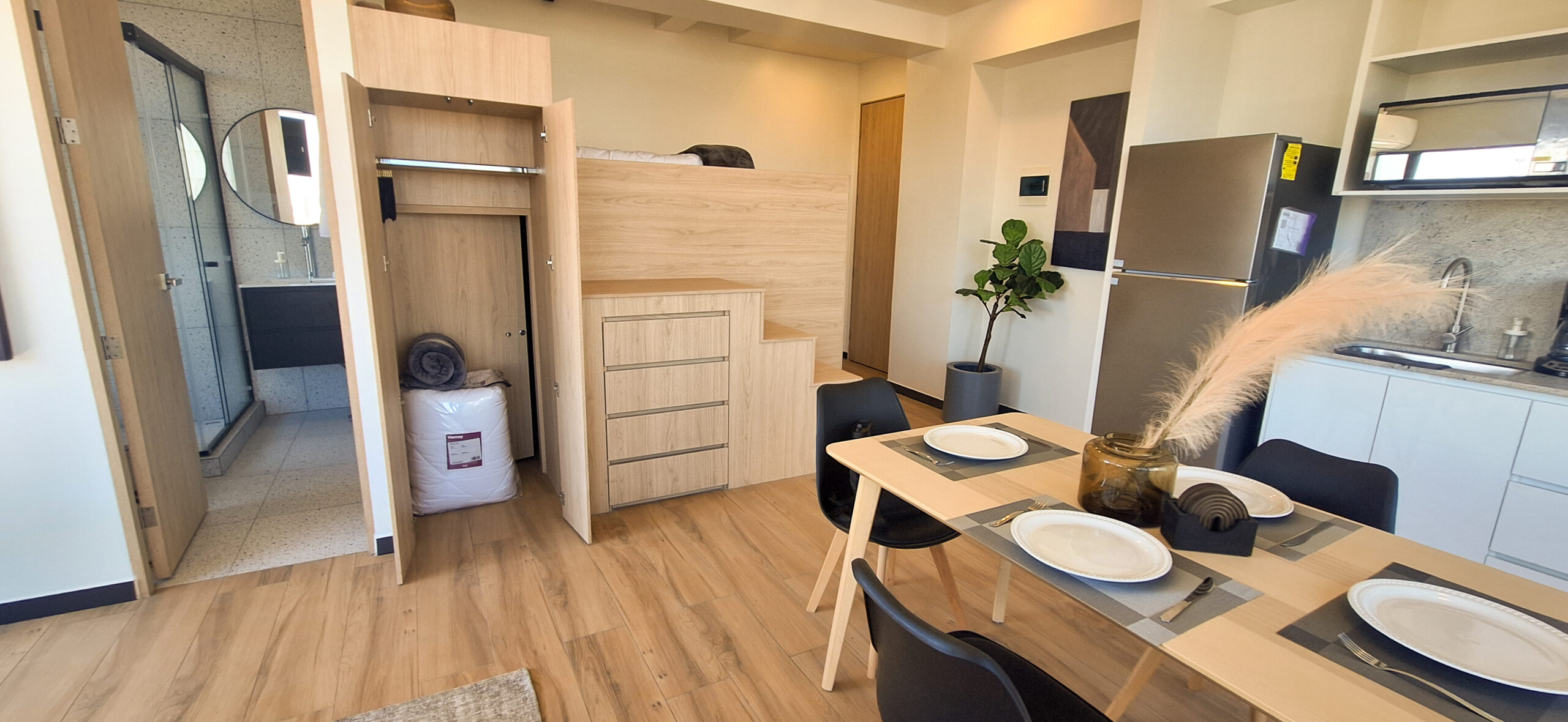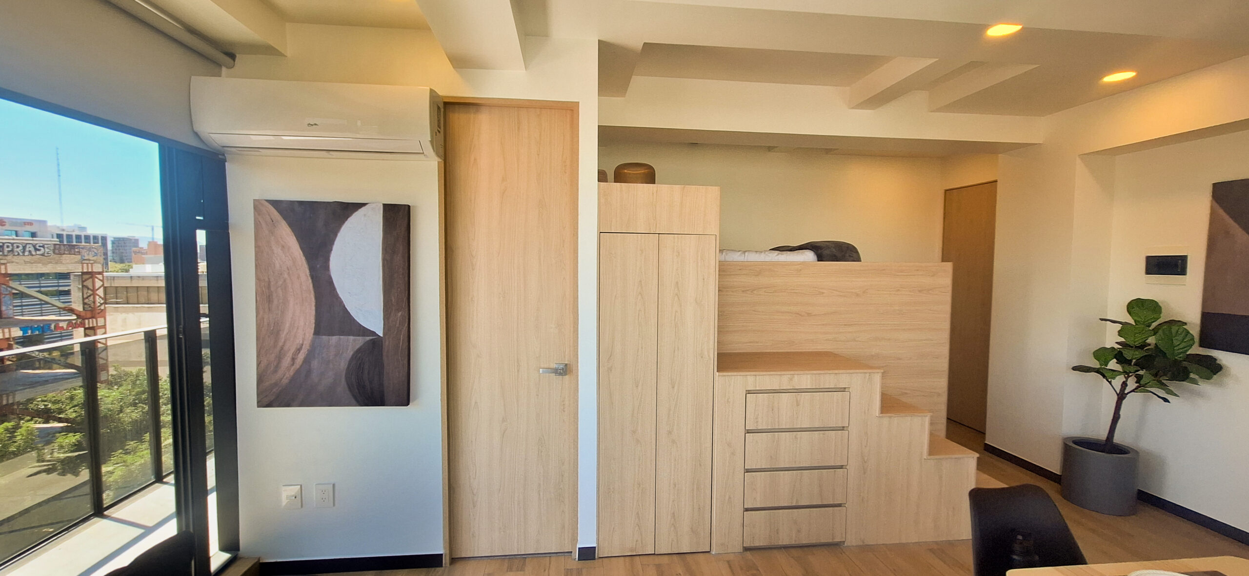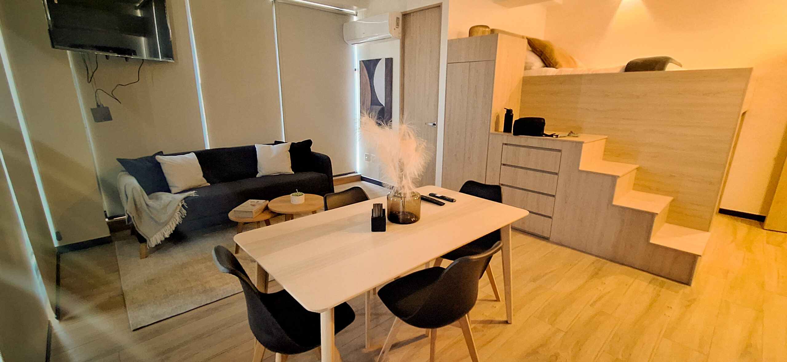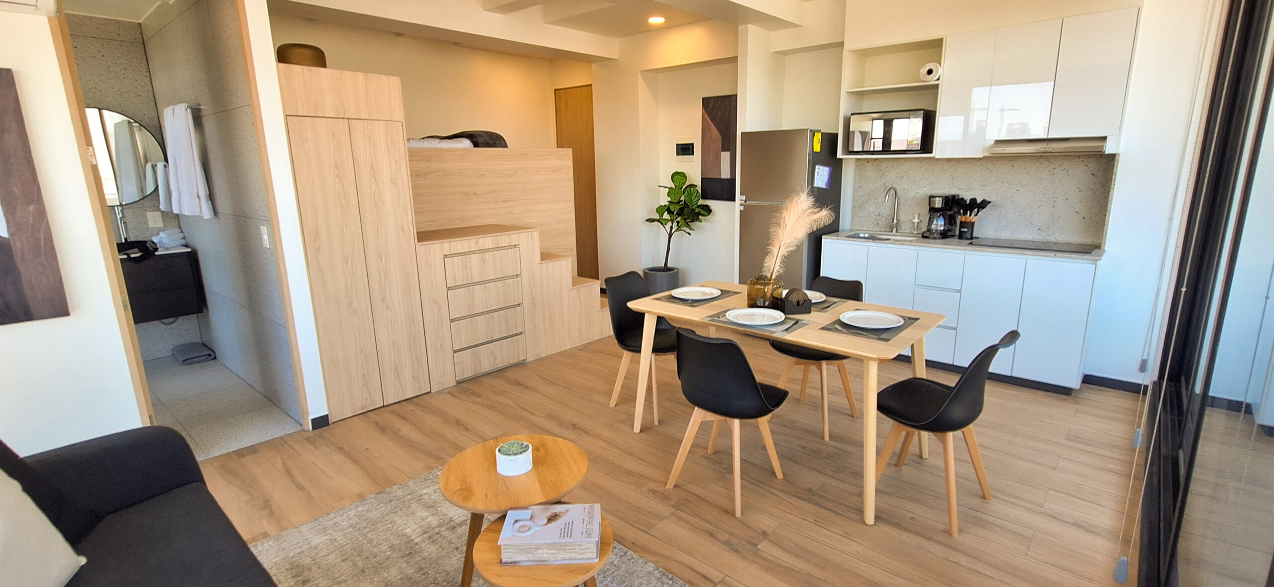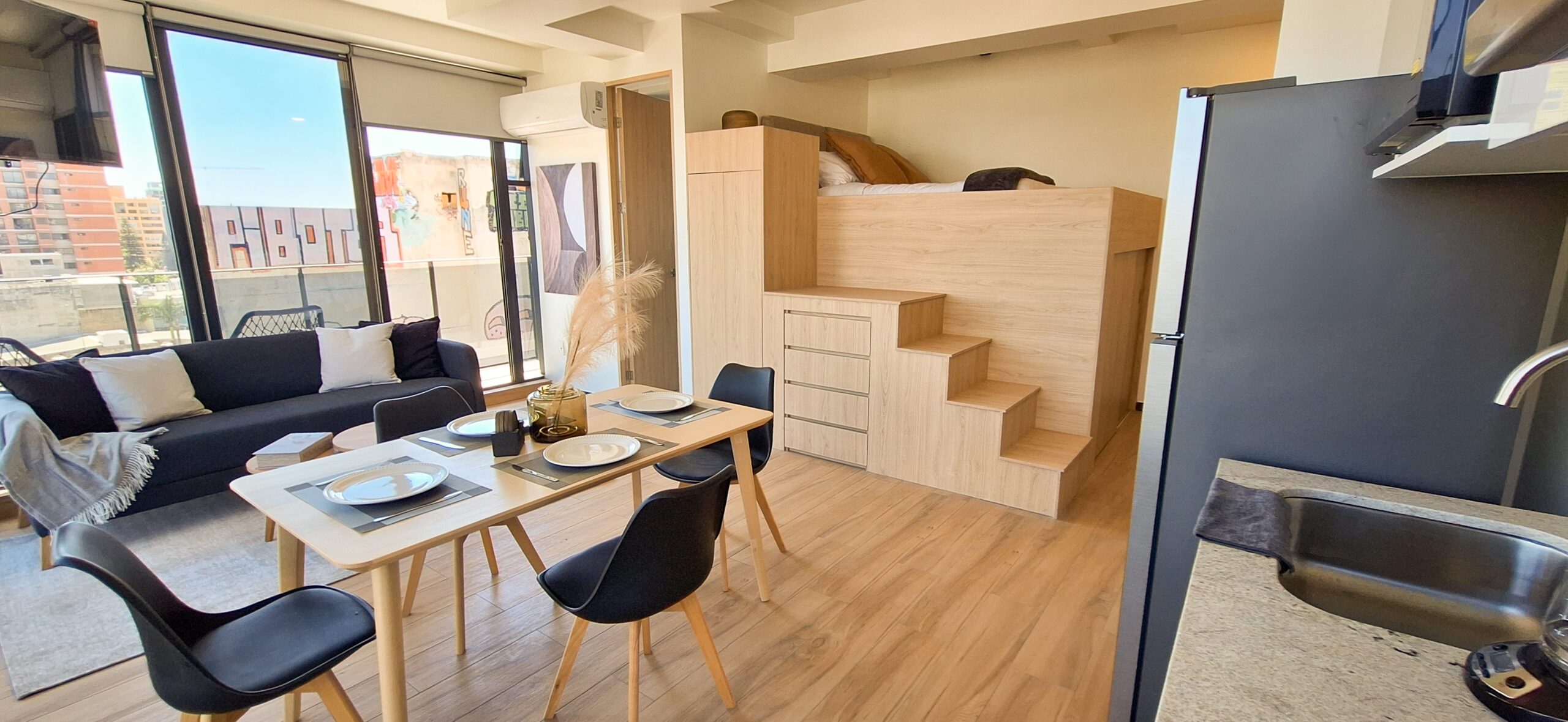 Departamento de estilo industrial y diseño funcional, con espacio optimizado para aprovechar al máximo su tamaño reducido.
