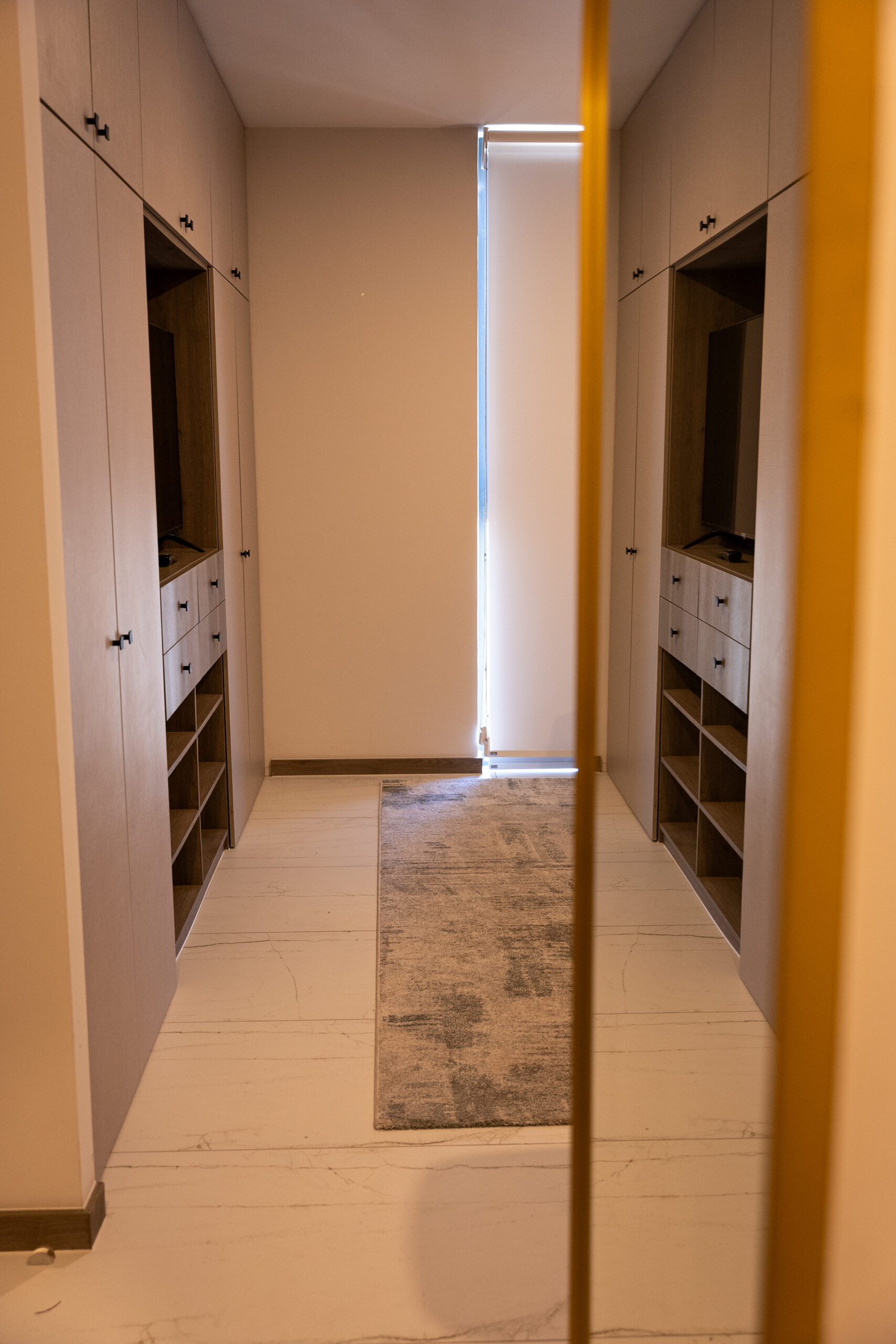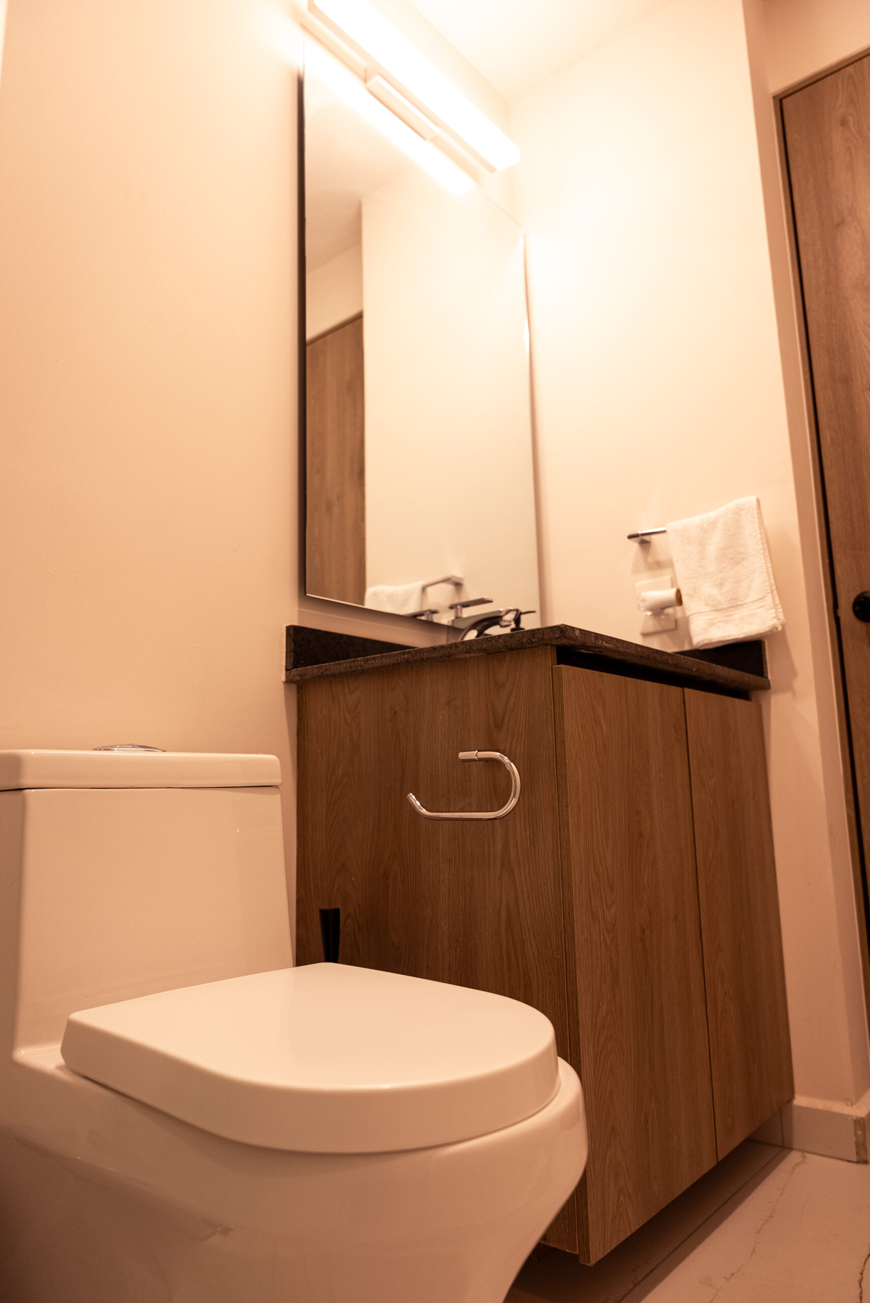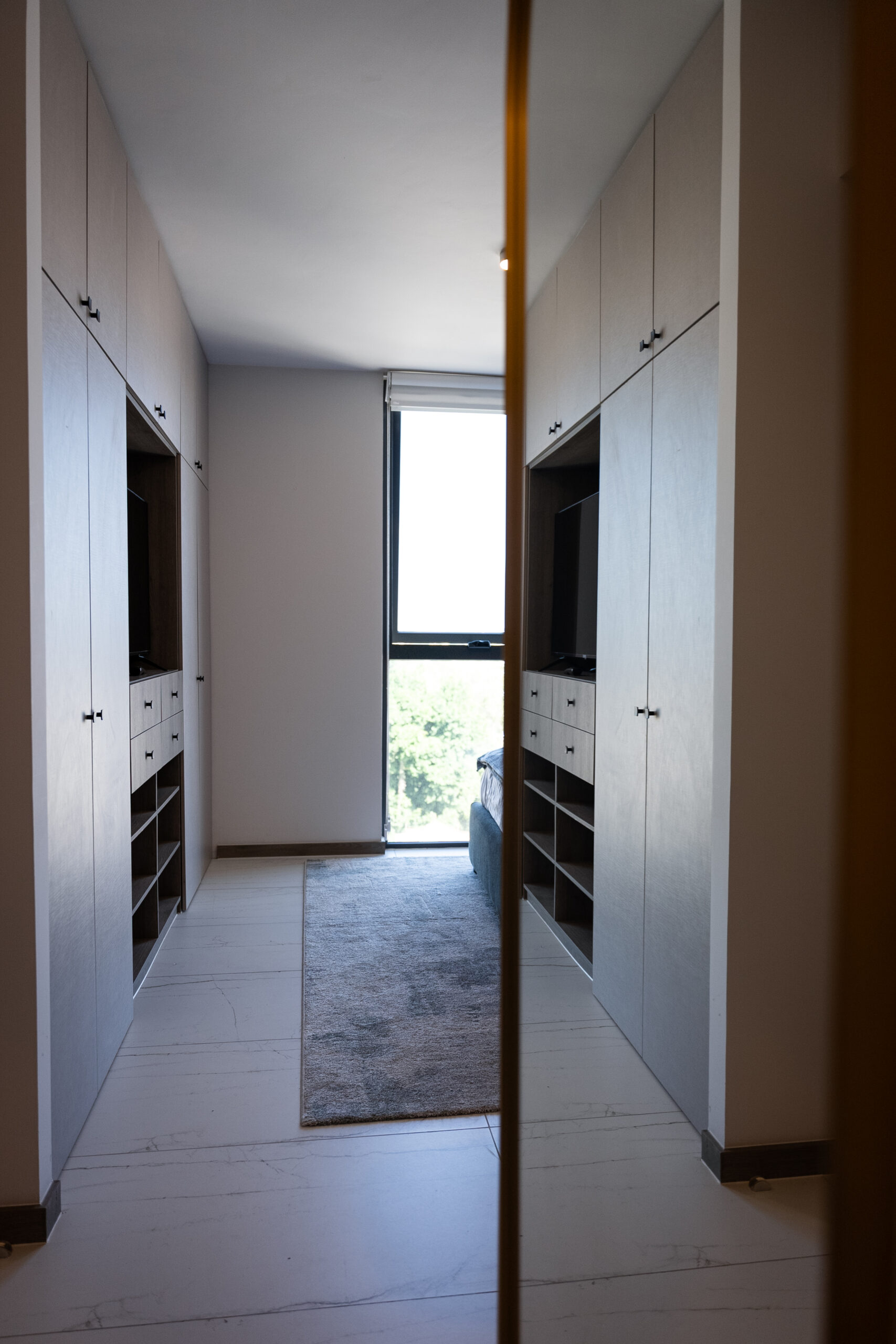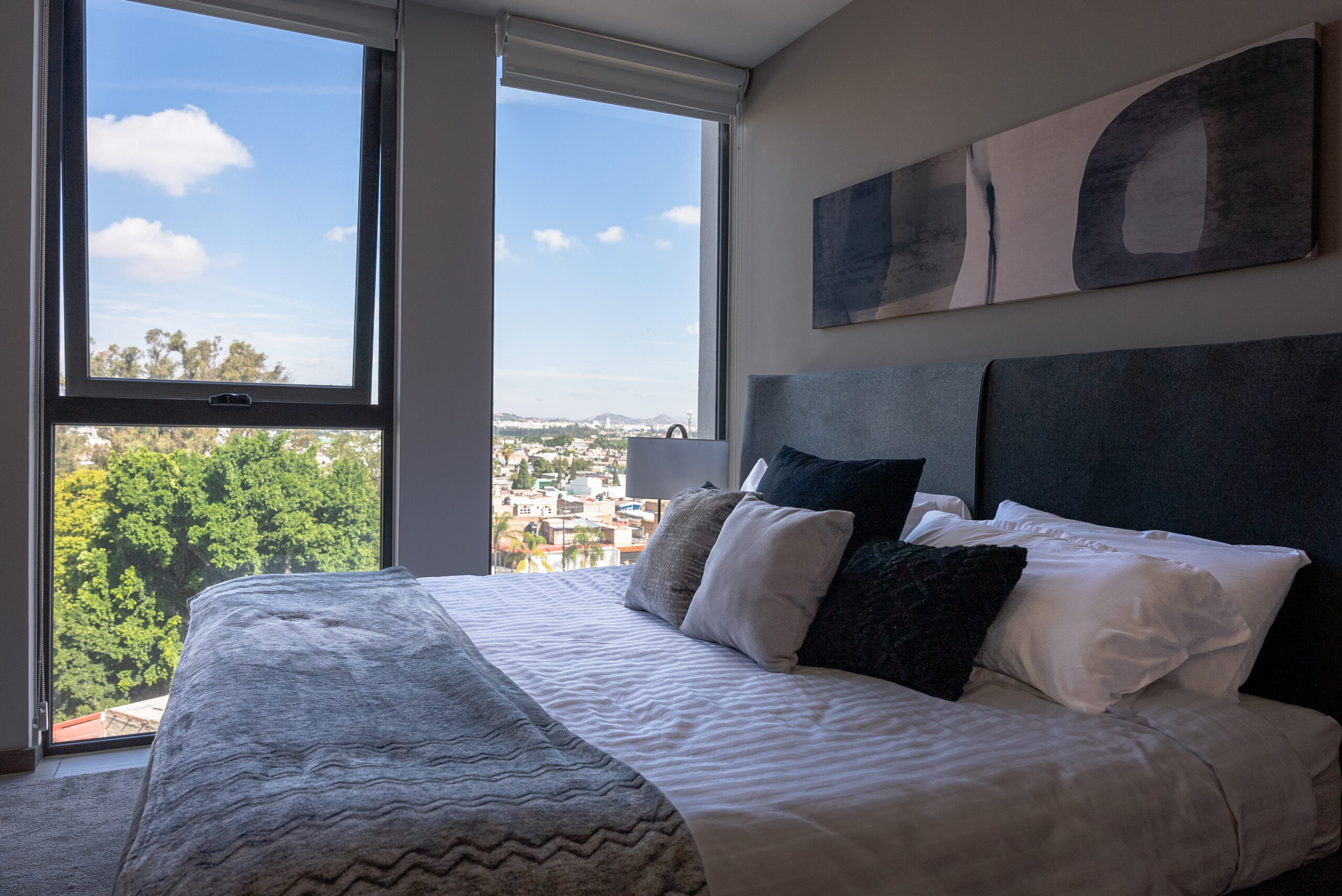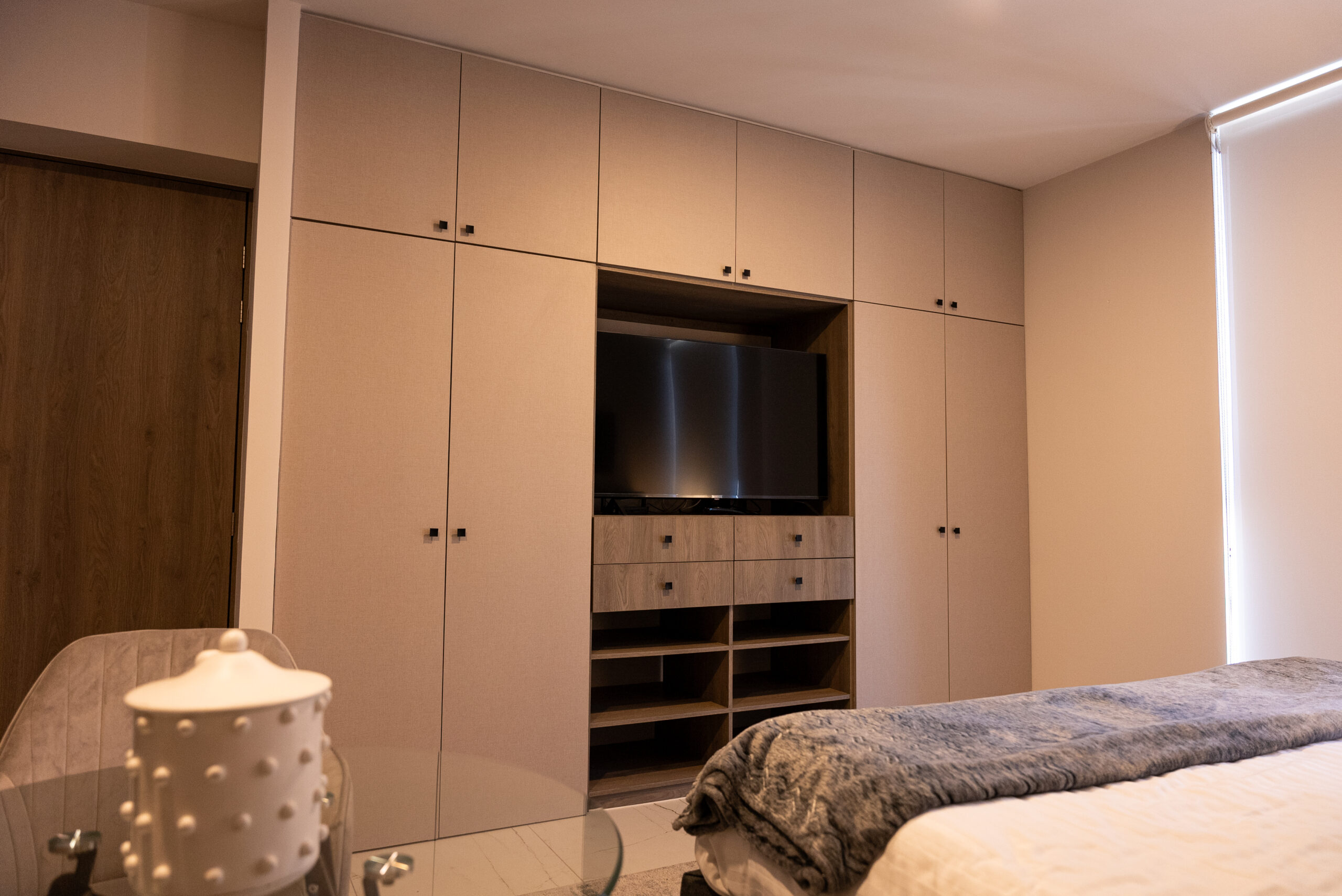 Departamento lock-off funcional con dos ambientes versátiles. Paleta cálida y elegante que aporta sofisticación y armonía, en sintonía con la arquitectura de la torre.