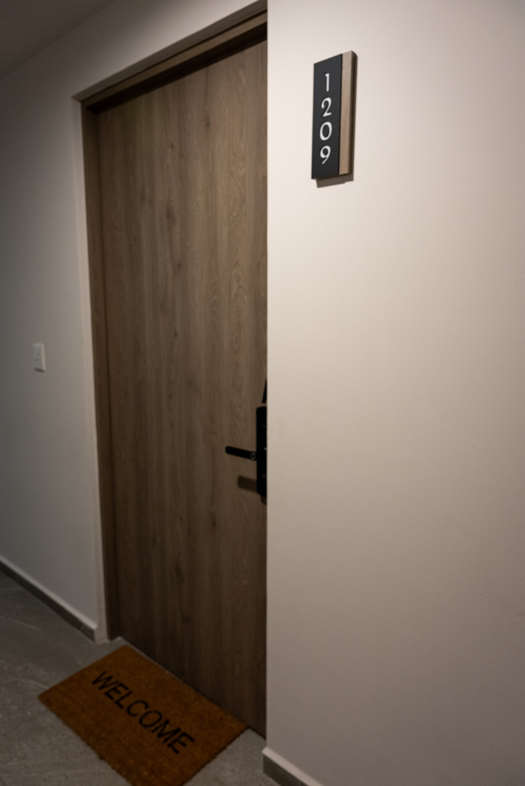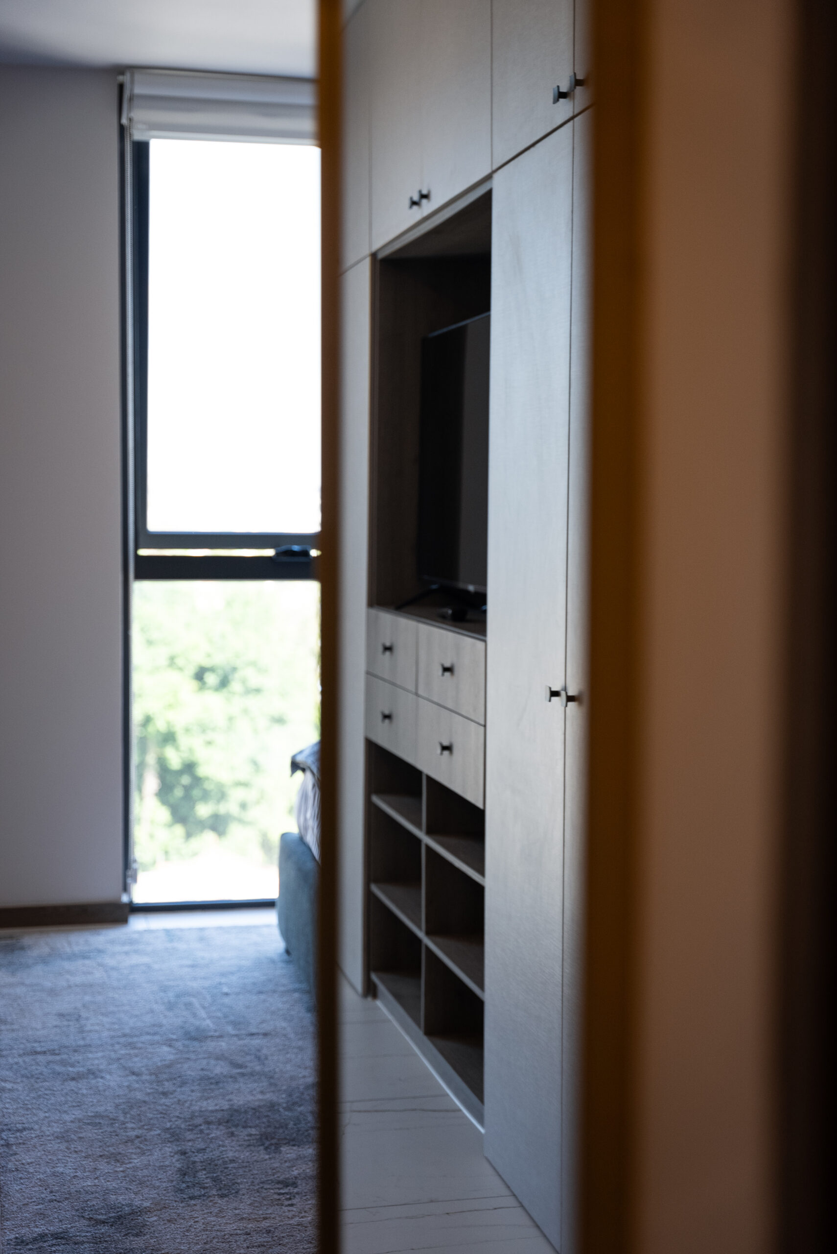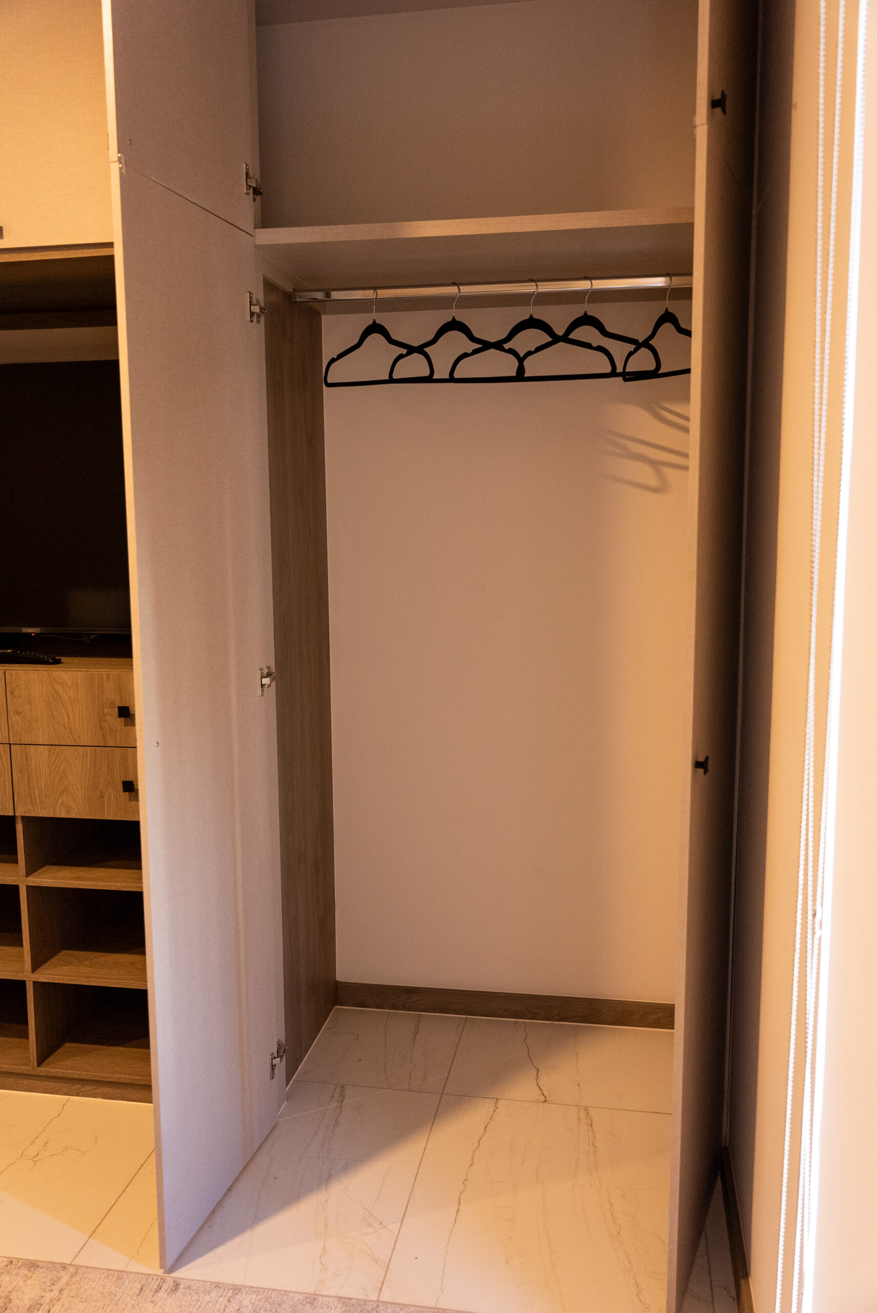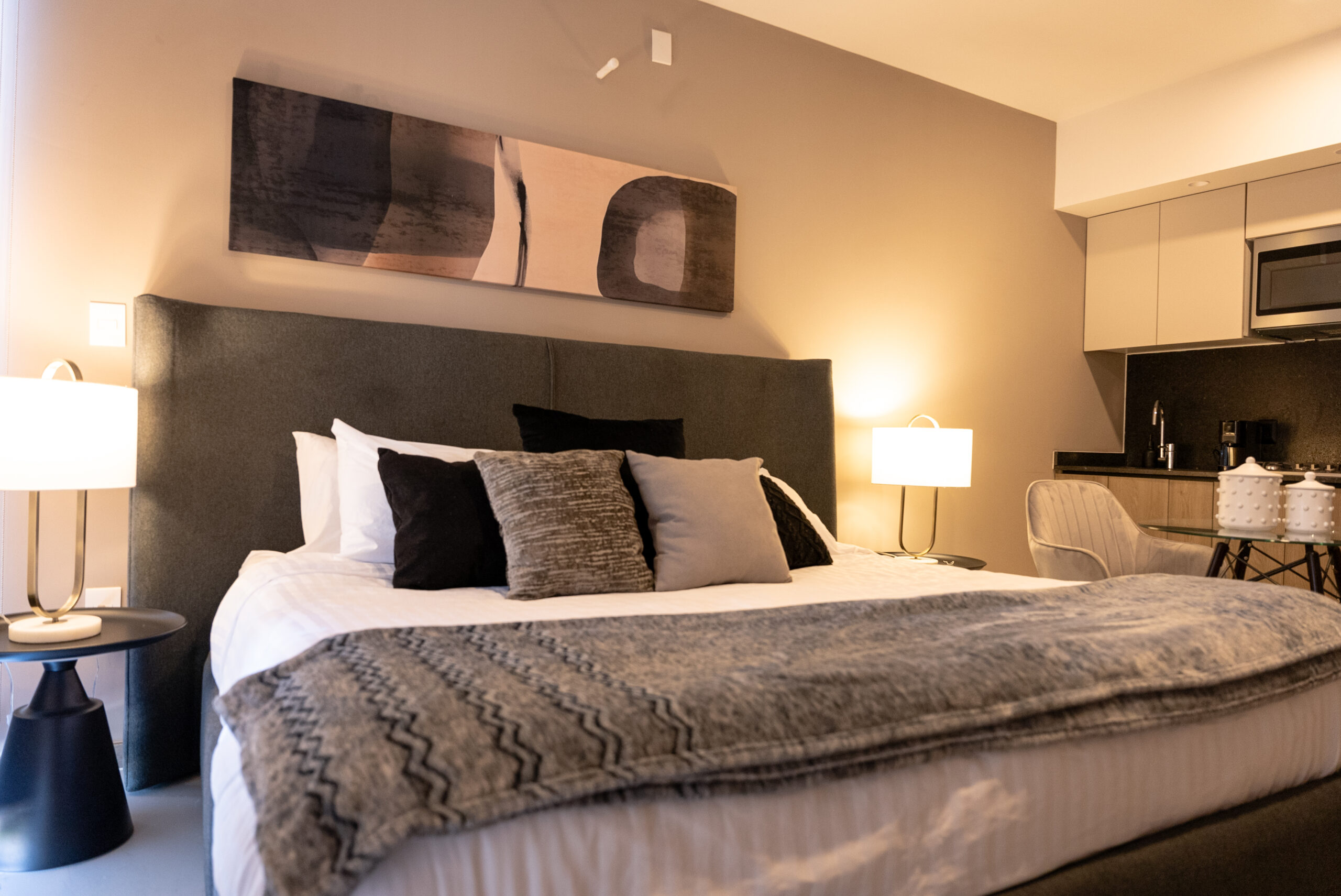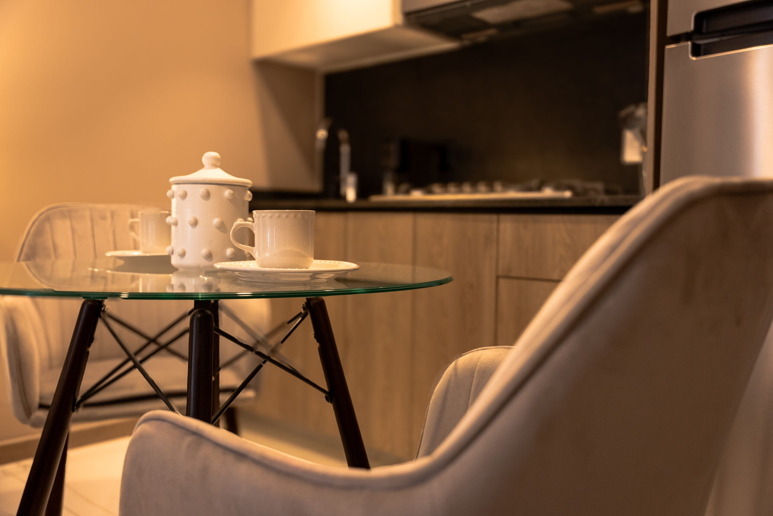 Departamento lock-off funcional con dos ambientes versátiles. Paleta cálida y elegante que aporta sofisticación y armonía, en sintonía con la arquitectura de la torre.