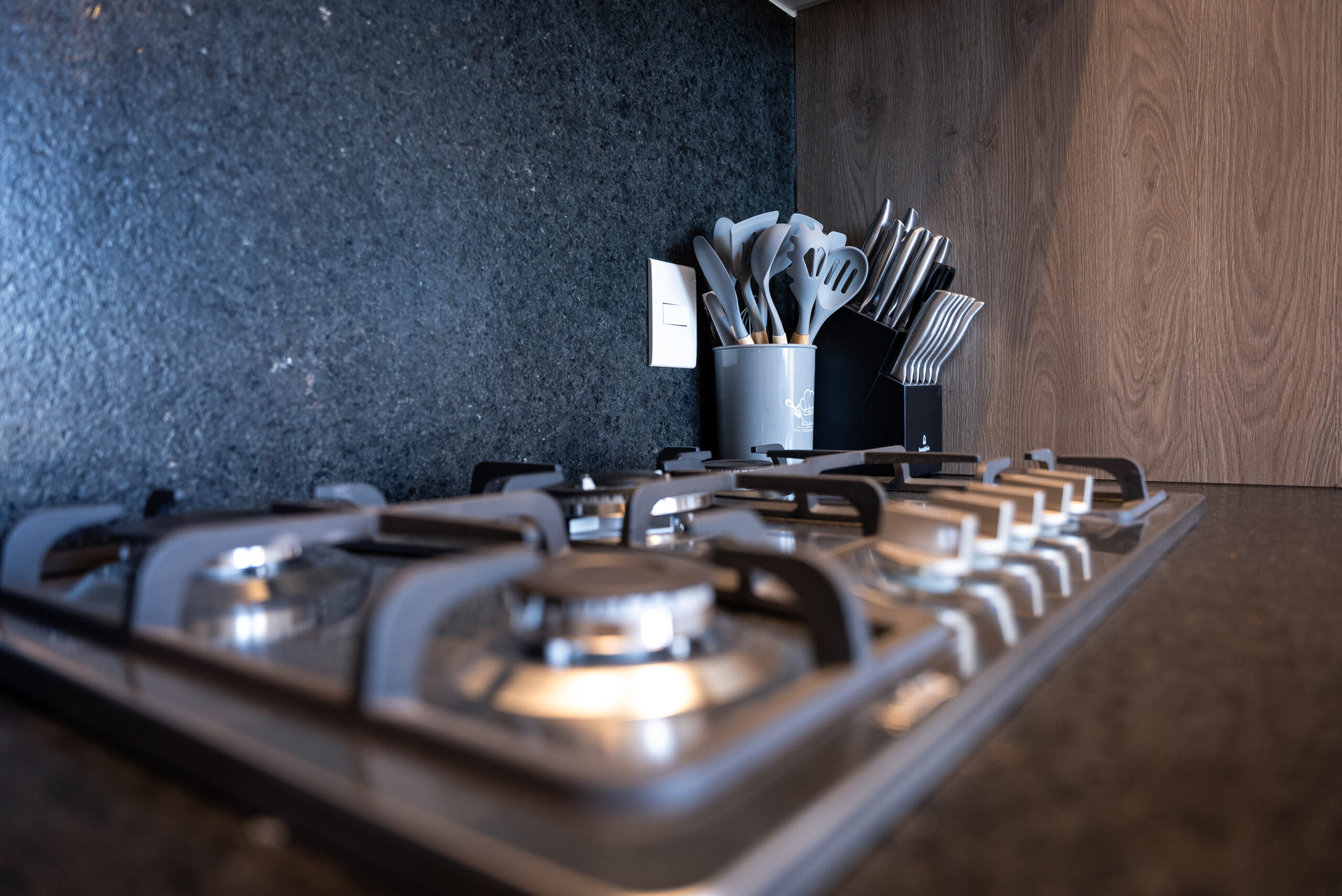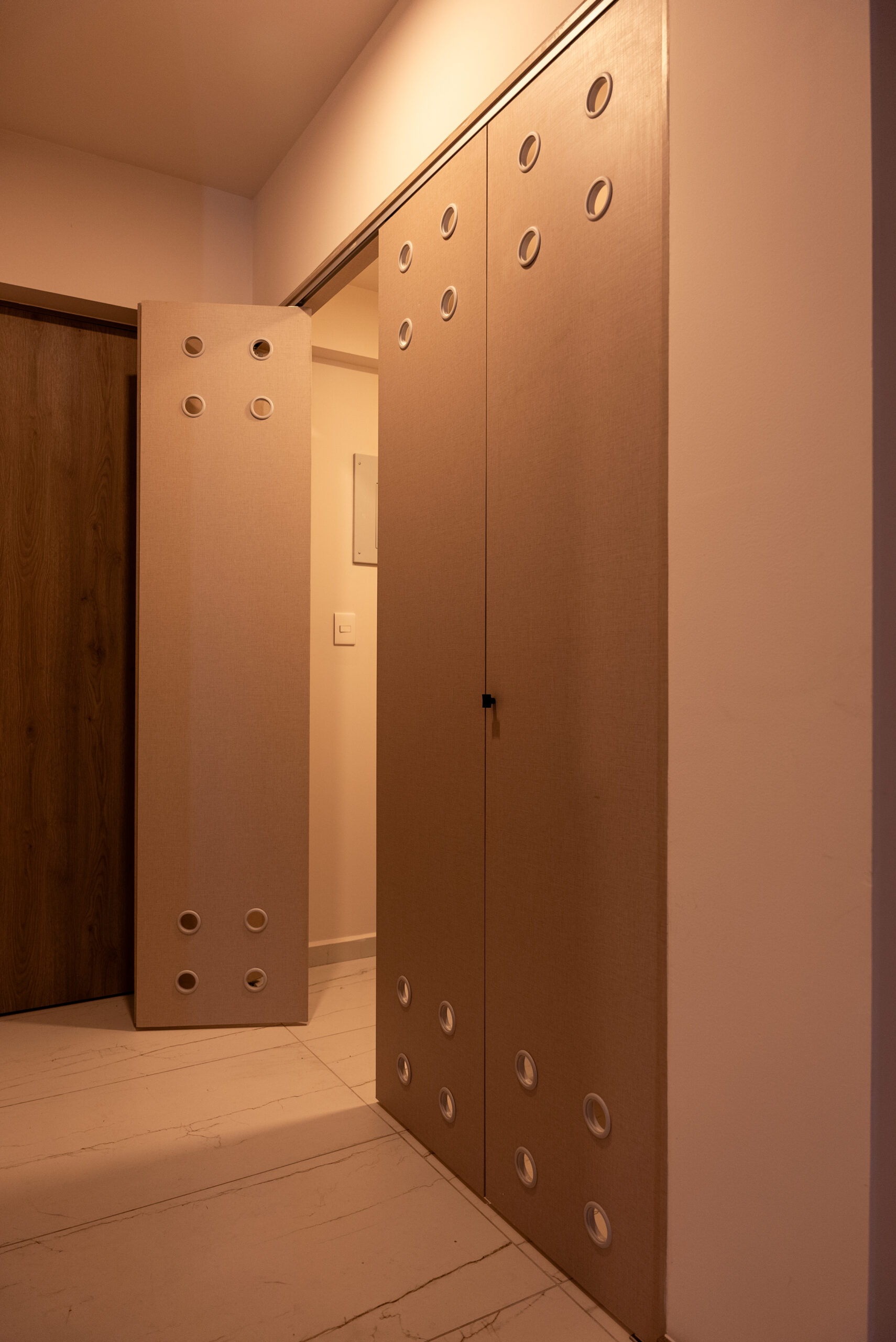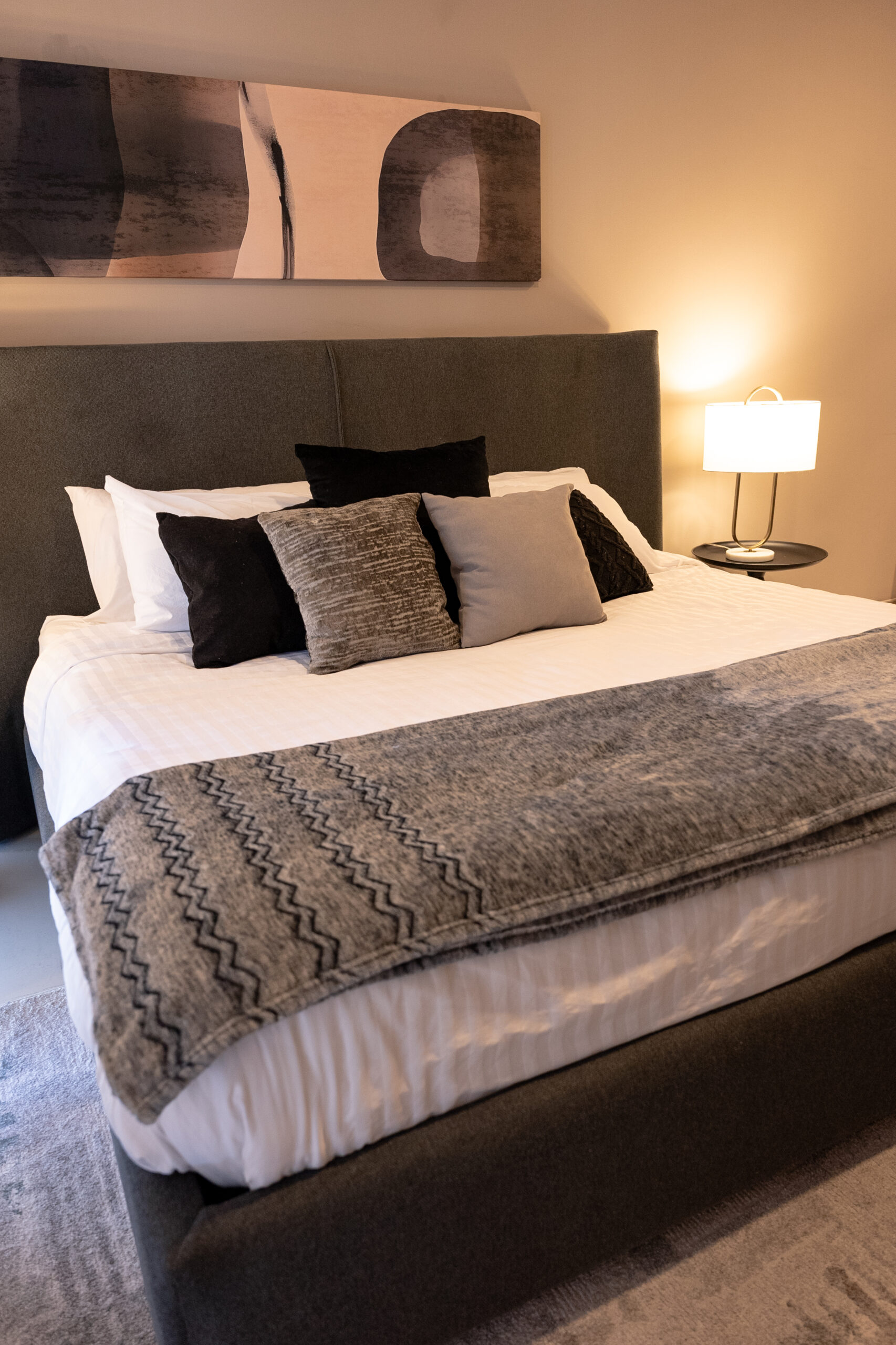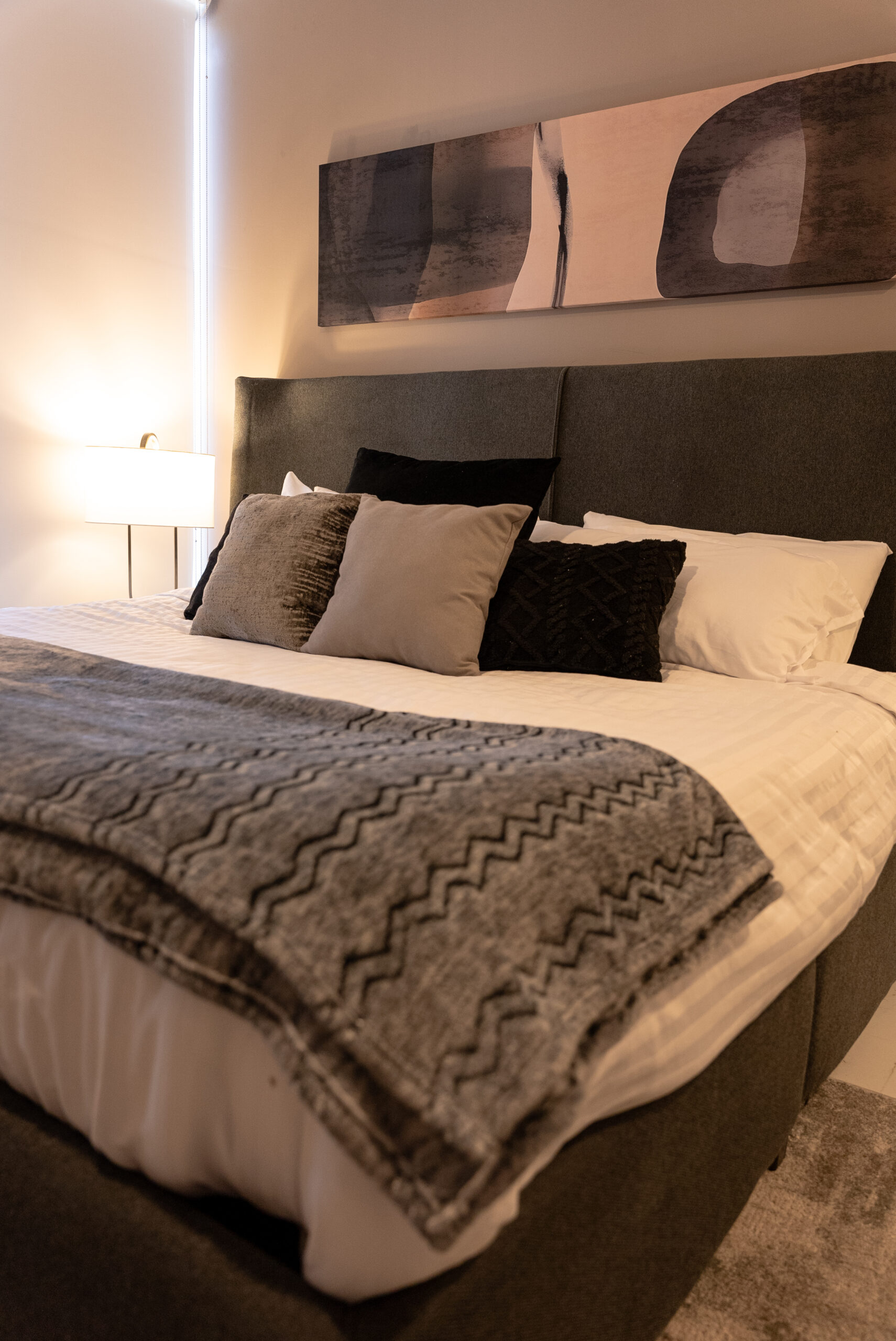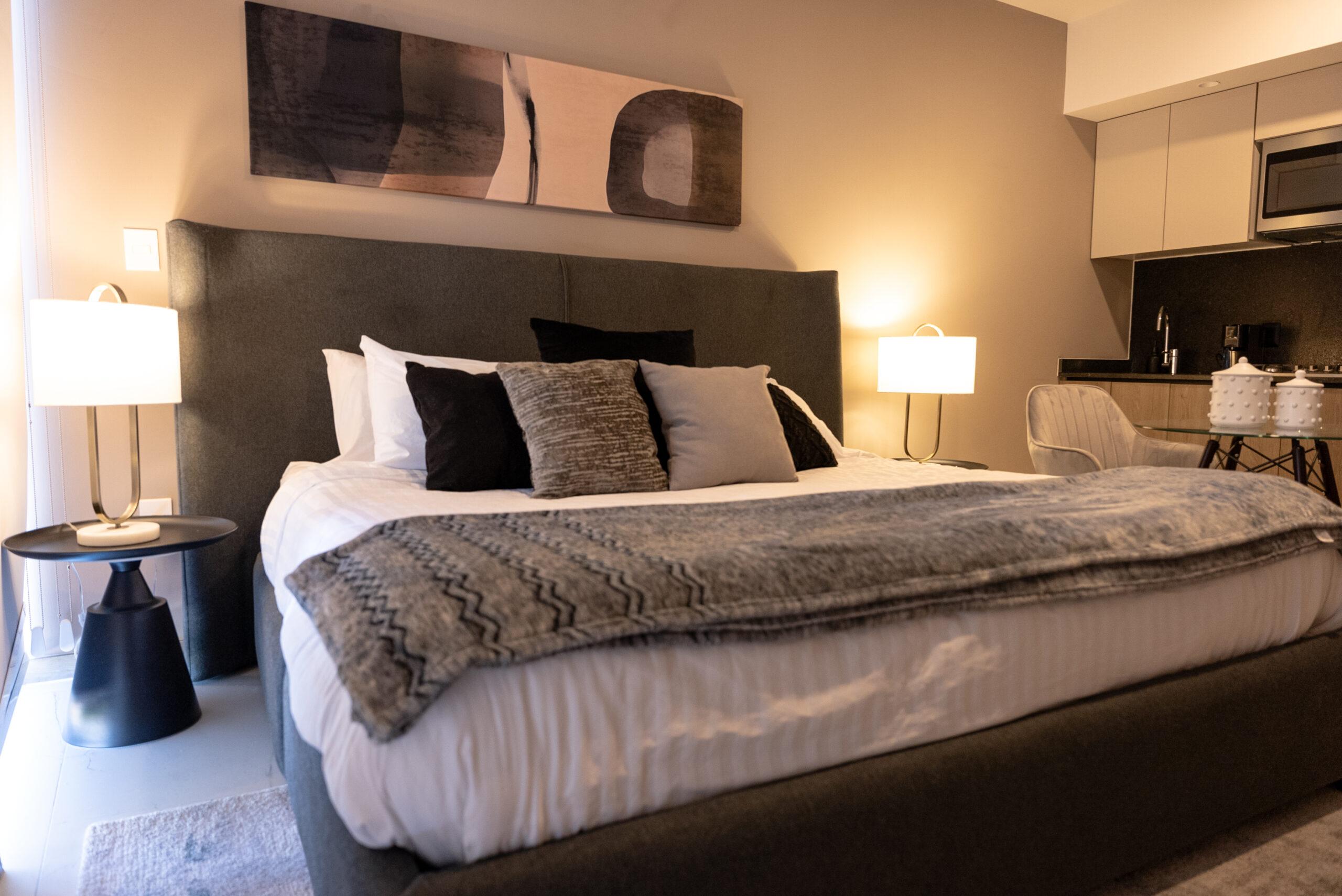 Departamento lock-off funcional con dos ambientes versátiles. Paleta cálida y elegante que aporta sofisticación y armonía, en sintonía con la arquitectura de la torre.