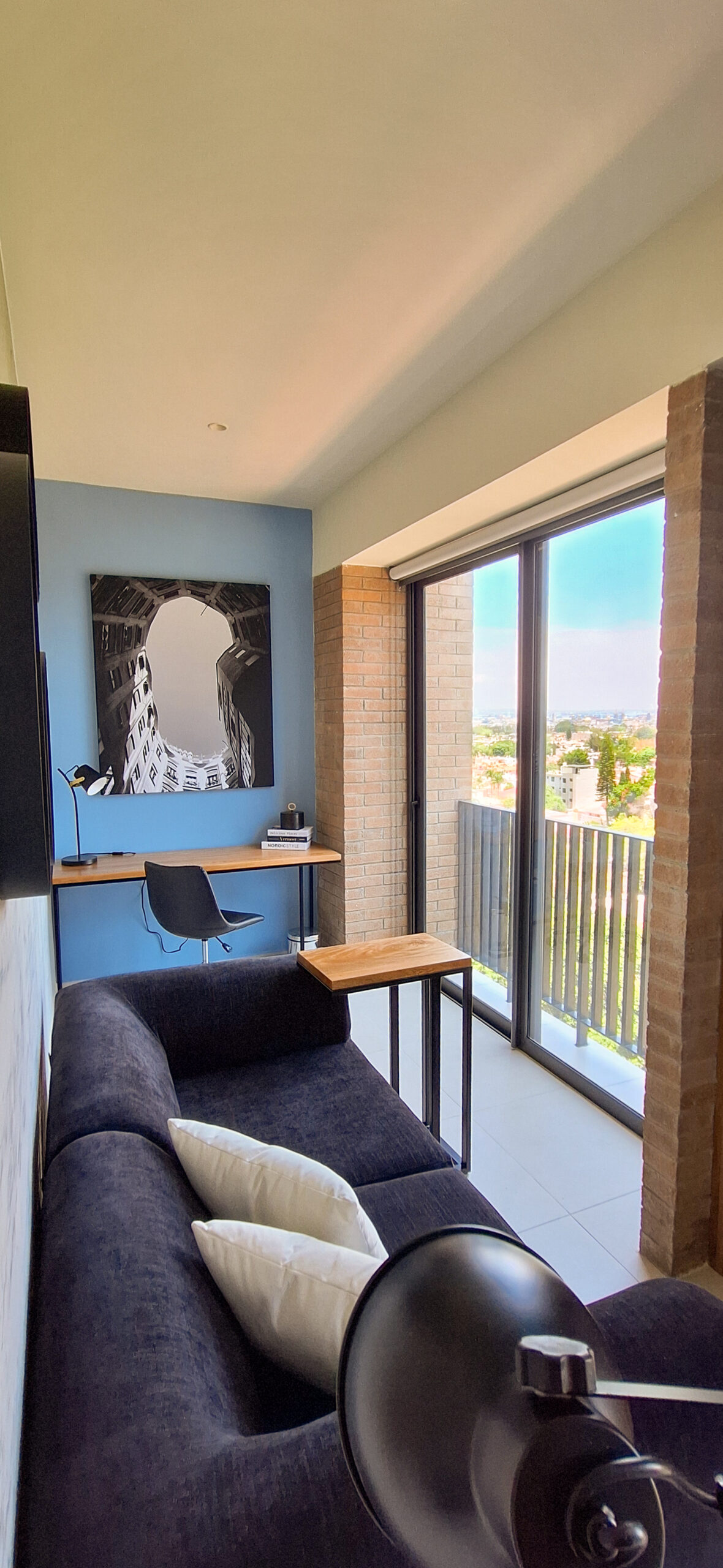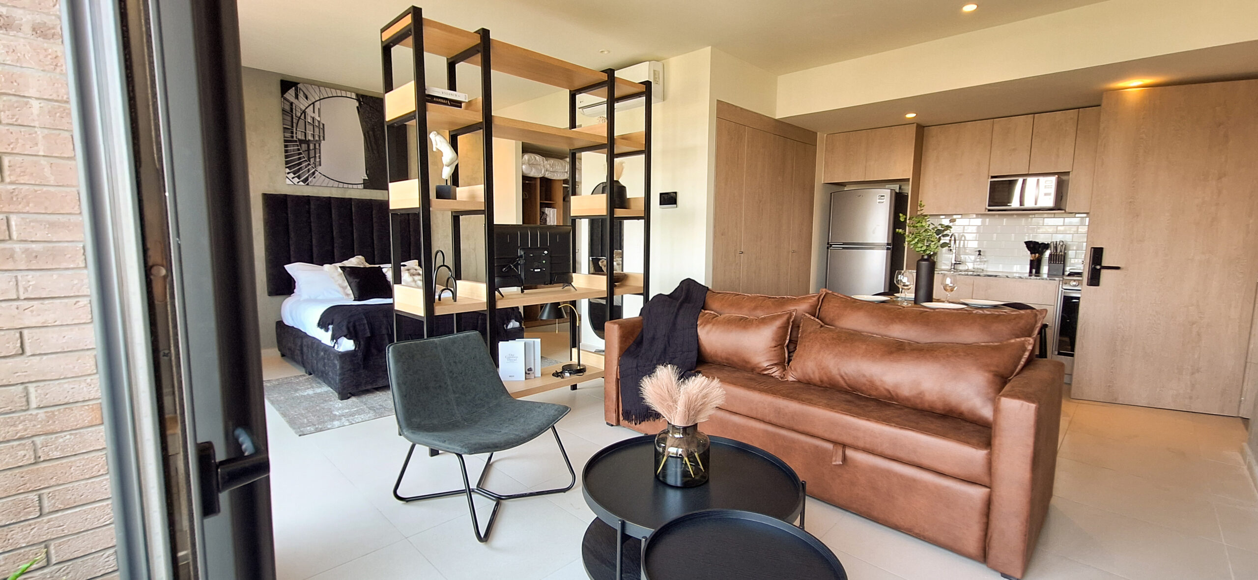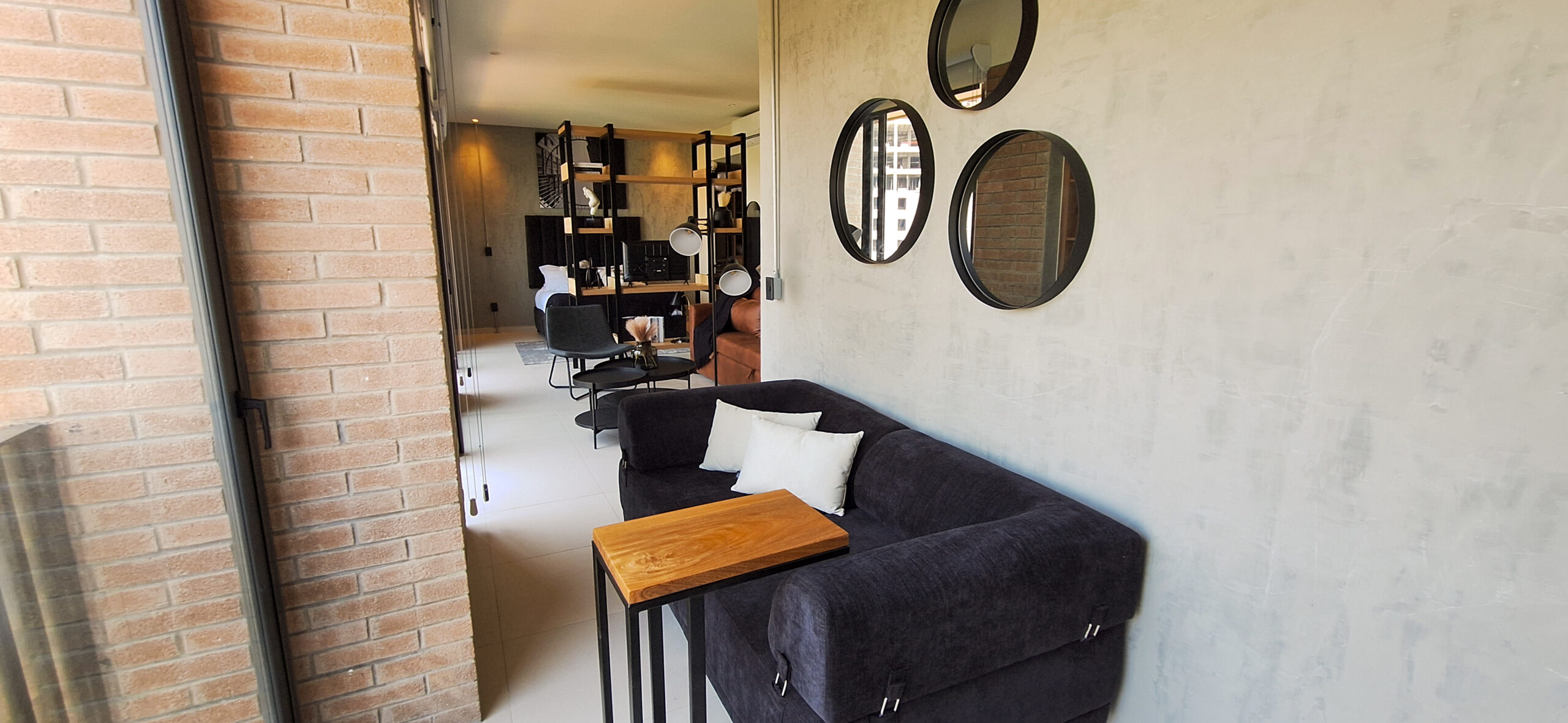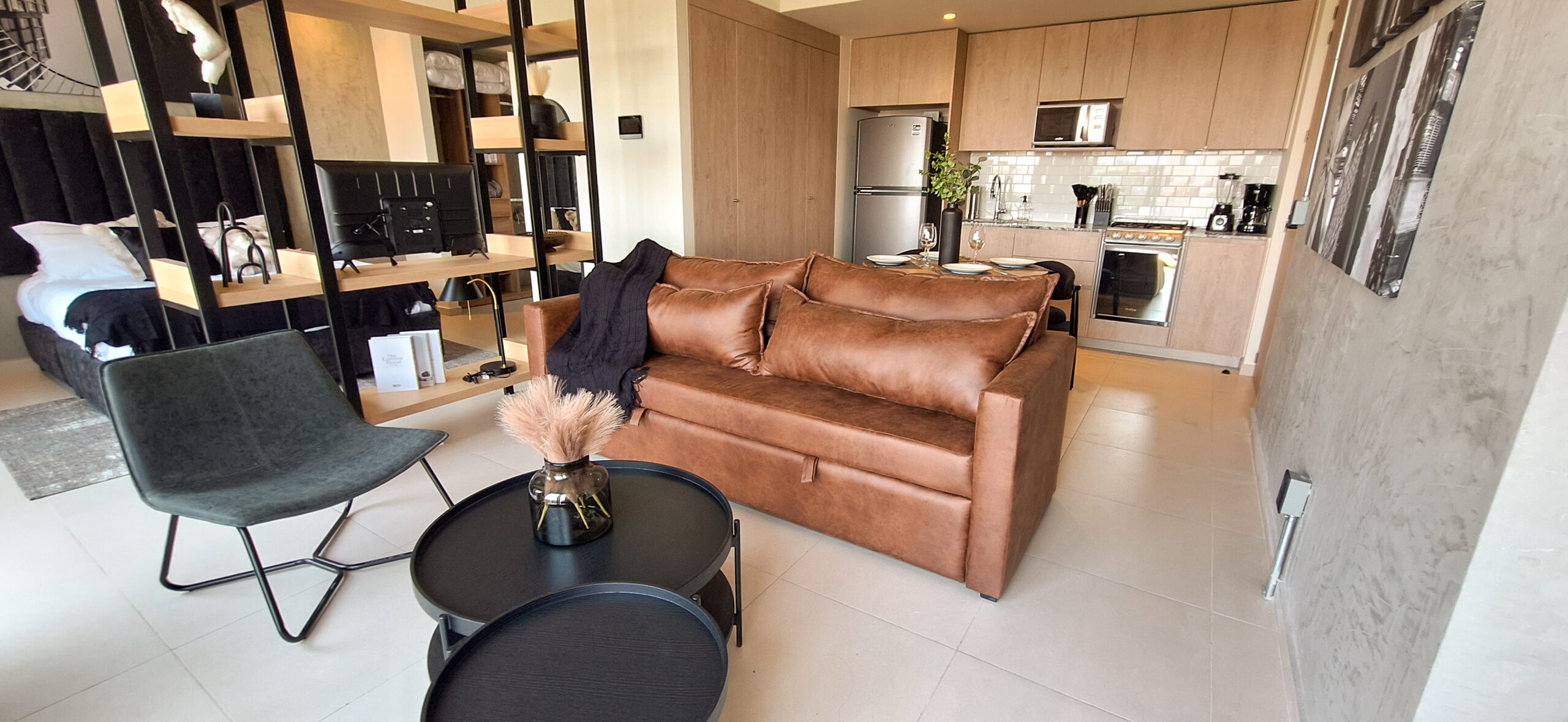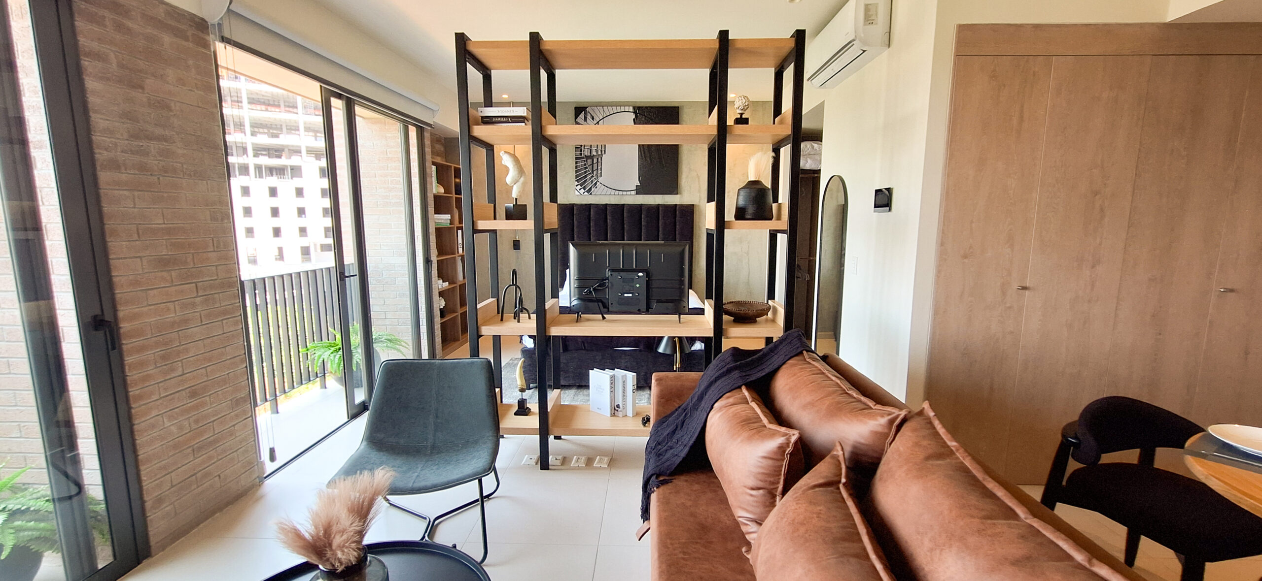 Loft de inspiración neoyorquina con esencia industrial. Tonos oscuros crean contraste y detalles sutiles equilibran lo estructurado, logrando una ambientación auténtica y moderna.